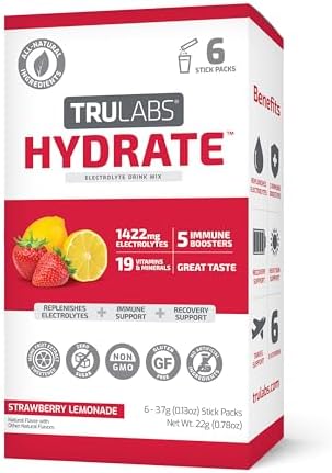 TRULABS Hydrate – Strawberry Lemonade. Sugar Free Electrolytes Hydration Packets. Each Serving Contains 1422 mg of Electrolytes &19 Vitamins & Minerals (6ct)